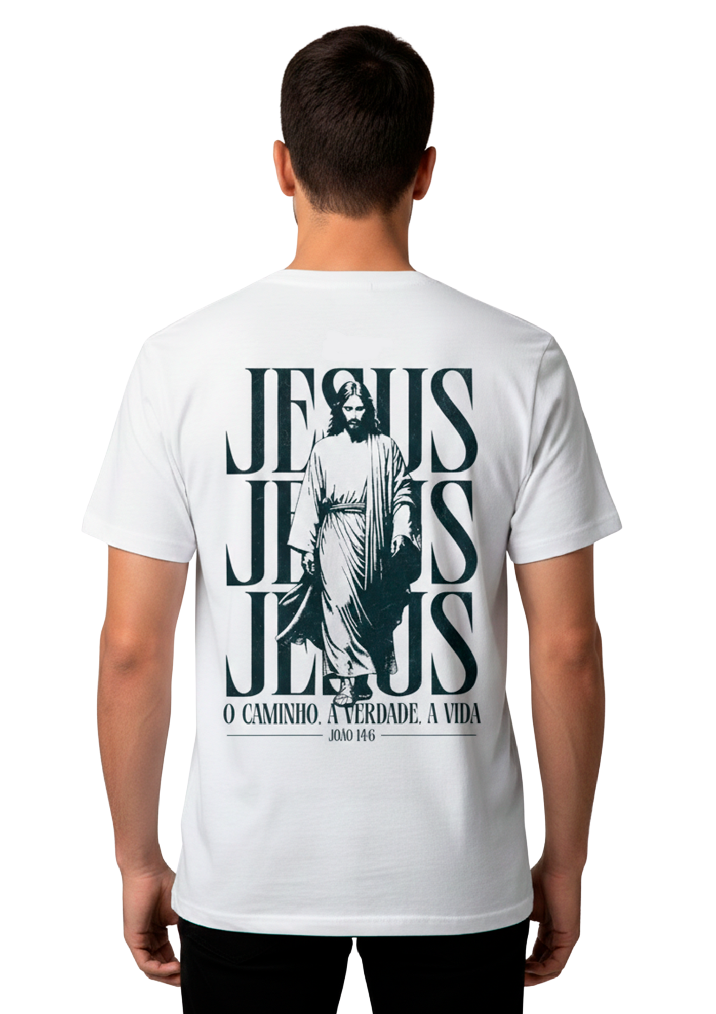 Esta peça une um design urbano e impactante com a mensagem central da fé cristã. Com uma estampa minimalista no peito e uma arte imponente nas costas, é ideal para quem deseja expressar seus valores com estilo e sobriedade.